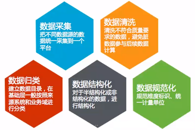 数据治理分为保障机制、管理、内容建设几个方面,并且贯穿数据开发的整个过程: