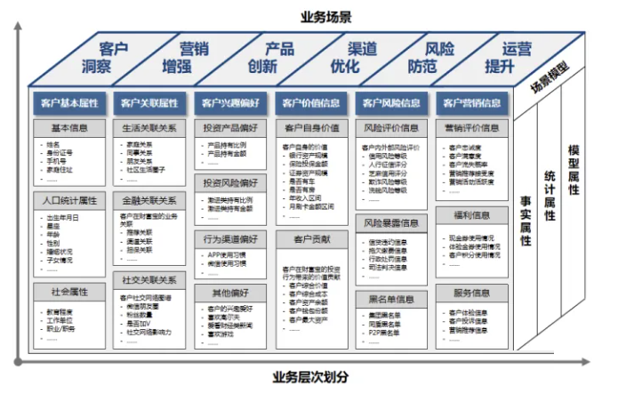 客户级:客户级数据汇总主要是针对客户账务数据和基本信息汇总 ,以及客户整合、客户贡献的方案等,一般客户级可以划分为个人客户汇总、个人客户存款汇总、个人客户贷款汇总、个人客户额度汇总、个人客户理财汇总、个人客户其他资产汇总、对公客户汇总、对公客户存款汇总、对公客户贷款汇总、对公客户贴现汇总。