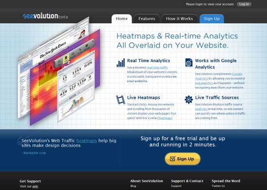 它目前处于测试阶段,提供了heatmaps和实时分析功能,你可以看到heatmaps直播。它的可视化工具集可以让你直观查看分析数据。
