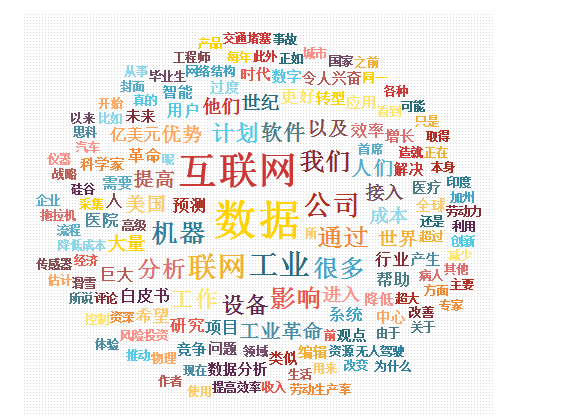 下图是本站编辑根据本站的文章“GE的千亿美元数据转型”进行词频分析并用Infogram生成的词频表以及词云图。