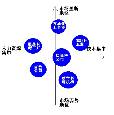 分析,BOWS 银行从调查问卷的结果分析发现了常见的六类商业客户,并按照东西方向(从人力资源集中到技术集中型企业)和南北方向(按市场地位从弱势到垄断地位发展)的象限分布图,从而可以根据这些典型客户推出各自相应的金融信贷产品,以及提供相关金融产品智能推荐的功能。