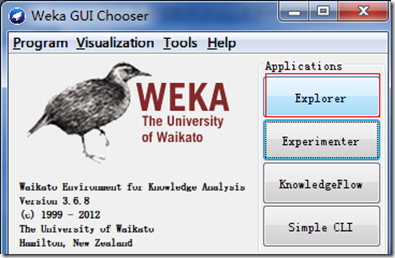 选择“Explorer”,如果以后高级用户,可以选择最后的“Simple CLI”,直接命令行操作。