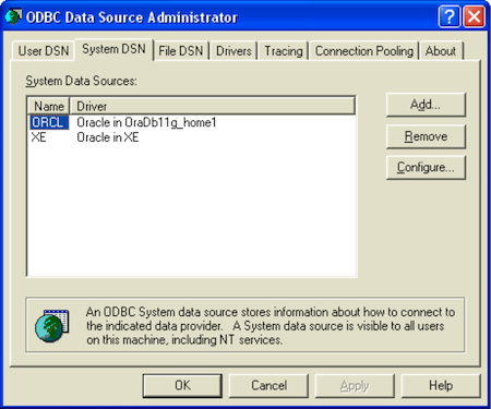 Windows 中配置一个 ODBC 数据源,请单击 Start 菜单,依次选择 Control Panel、Administrative