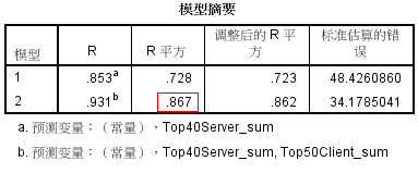 建立线性模型来预测 COS_Total,预测准确度达到 86.2%,说明 COS_Total 与 Top40Server_sum、Top50Client_sum