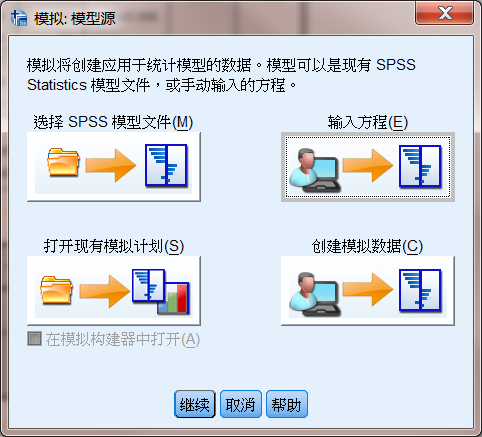 在 IBM SPSS Statistics 22 中选择分析菜单下的模拟模块,打开如下图 6 界面,选择“输入方程”。