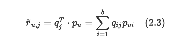 u 的向量标识为 p_u∈R^b, 物品 j 的向量标识为 q_j∈R^b,这些向量是基于评分举证计算