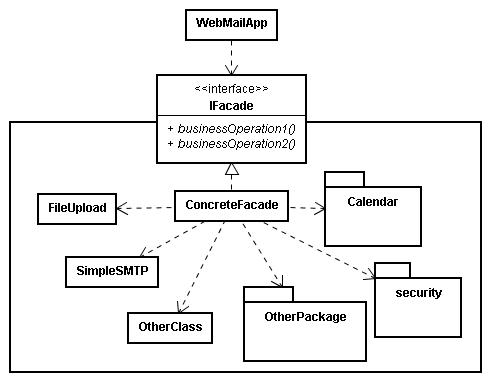 您应该定义一个Facade介面,在当中定义好商务逻辑,例如寄送附件档案的方法(method),然后在一个实现类中,组合您手边的元件,使其达成您所希望的商务行为,例如: