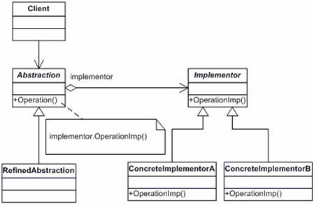 桥接模式的主要目的是将一个对象的变化因素抽象出来,不是通过类继承的方式来满足这个因素的变化,而是通过对象组合的方式来依赖因素的抽象,这样当依赖的因素的具体实现发生变化后,而我们的具体的引用却不用发生改变,因为我们的对象是依赖于抽象的,而不是具体的实现。而且,通过这样的依赖抽象,我们在多个对象共享这样的因素的时候,就成为可能,如果我们使用的是具体的因素的共享,当我们改变这个变化因素的时候,我们必须把使用这个因素的所有的对象,都进行相应的修改,而如果所有的引用这个变化因素的对象都依赖于抽象而不是具体的依赖呢?这也为我们的共享的提供了变化性。