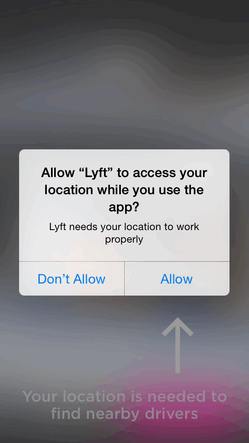 从本质上讲仍然是“直接问”的模式,但这类app会在询问时通过一些小技巧变着法的诱导用户点击“允许”。实现成本不会比第一种高出很多,但获取授权的几率会增大。看看Lyft的做法: