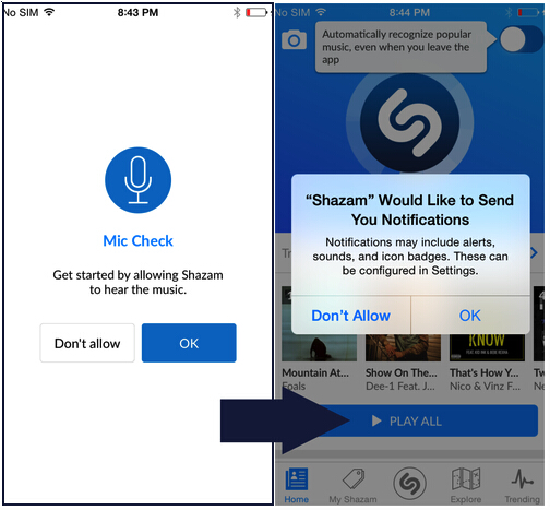 两次提问的情境是可以根据实际情况进行控制的,例如Shazam这样,将第一次机会放在进入实际app之前,与引导页当中的内容整合起来。