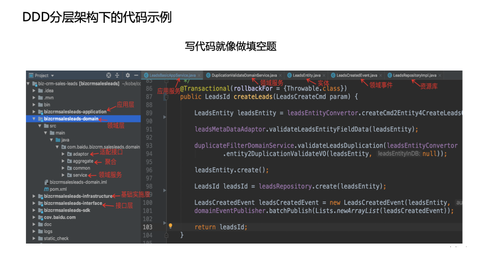 目前百度爱番番的新服务默认都会在符合DDD架构的骨架代码基础上开发,存量的核心模块也进行过DDD改造。全面实施DDD后产研团队目标更对齐,协作效率更高,收获了很多收益,包括但不限于以下几点: