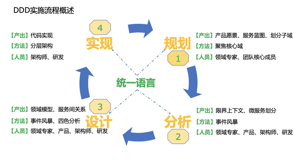 从需求到交付的一次典型软件开发流程包括收集提炼需求、需求分析、业务&技术设计、代码实现、测试上线等环节。如何结合软件开发流程,每个流程阶段具体要做什么、怎么做,特别在编码落地阶段该有什么保障措施?爱番番产研团队在落地过程中逐步总结出了一套行之有效的DDD实施指南。包括规划、分析、设计到实现四个阶段对应的方法和产出等实施要点。