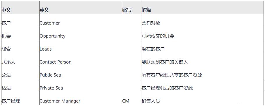比如一个CRM系统,我们可以从业务需求中挖掘出一些重要的领域概念,把这些概念整理成词汇表会如下所示。