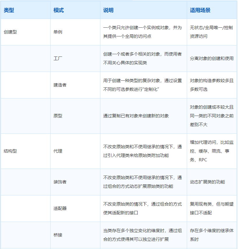 创建型:主要解决对象的创建问题,封装复杂的创建过程,解耦对象的创建代码和使用代码