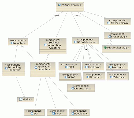 业务集成适配器由一组软件 API 组成,提供了与后端企业信息系统 (EIS) 的本地通信,以及配置业务对象和适配器的工具。合作伙伴服务根据不同的软件供应商使用自定义适配器,包括 SAP、Siebel 和 IBM® WebSphere®(它提供了 WebSphere Adapter Toolkit,以及数十种适配器,包括 WebSphere Adapter for SAP Software 和 WebSphere Adapter for Siebel Business Applications)。