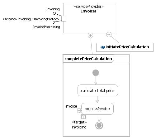 消费者的货品计价端口和货品计价提供者的货品计价端口之间的服务信道连接器拥有一个契约(行为),这个行为是 InvoicingService