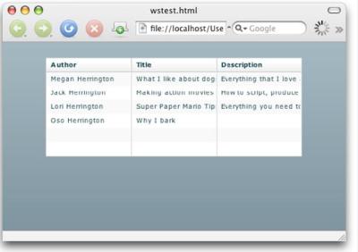 此代码使用Prototype.js库从数据库访问数据,然后使用浏览器中的XML DOM功能访问作者、标题和描述字段。然后,使用HTML