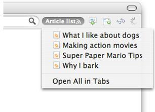 此方法的好处在于,除了可以阅读XML的任何自定义代码之外,还可以使用所有的RSS工具。例如,可以在feed中指向我的Firefox浏览器,就会创建可以放到工具栏并检查更新的“活动书签”,如图5所示。