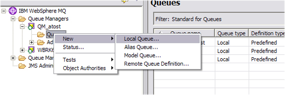 中右键单击 Queues 节点,然后选择 New => Local Queue...(图