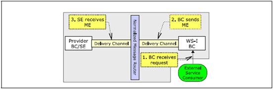绑定组件必须将绑定于特定协议的消息转换成格式化消息(NM)。绑定组件和服务引擎通过传输通道(Delivery