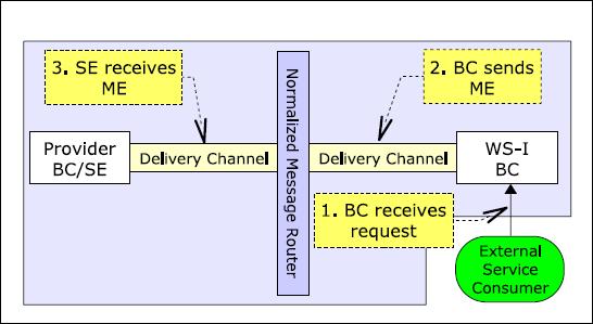 绑定组件必须将绑定的消息(特定协议和传输格式的消息)转换成规格化形式。绑定组件和服务引擎通过传输通道(Delivery