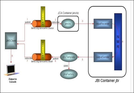 - inputReceiver 通过jencks订阅"demo.org.servicemix.source"