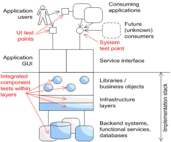 - 针对堆栈的每个整合层执行测试(通常是通过一个单元测试环境)