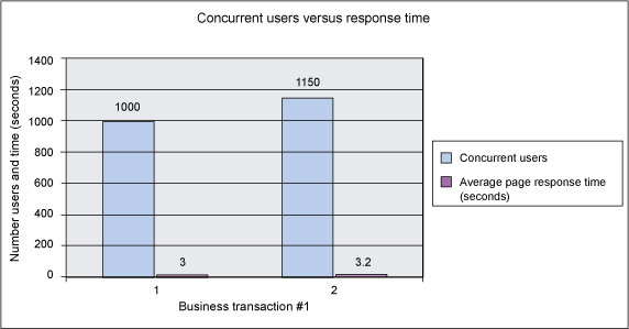 图 3 显示,在示例应用程序中的业务事务 1 的并发用户数量从 1,000 增加到 1,150 时,平均响应时间从