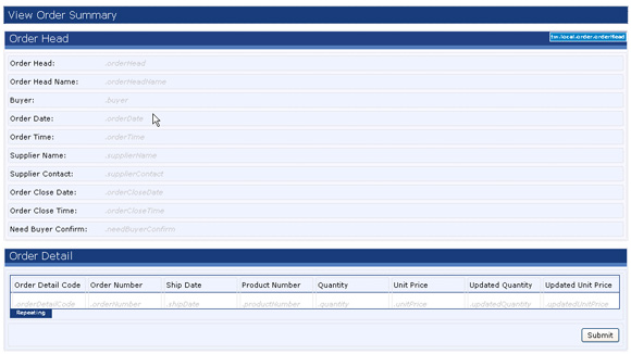 Detail 部分将 tw.local.order.orderDetail 的值显示为表控件。该表控件显示