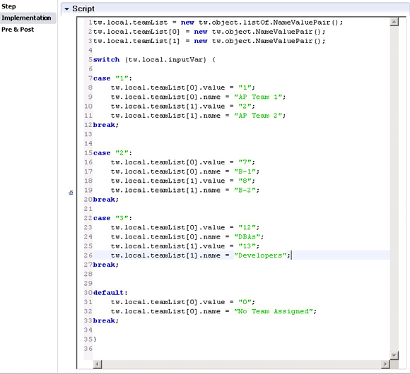 是 Ajax 服务的输入控件,tw.local.teamList 是 Ajax 服务的输出。这里,我们使用固定值作为示例,您可以使用