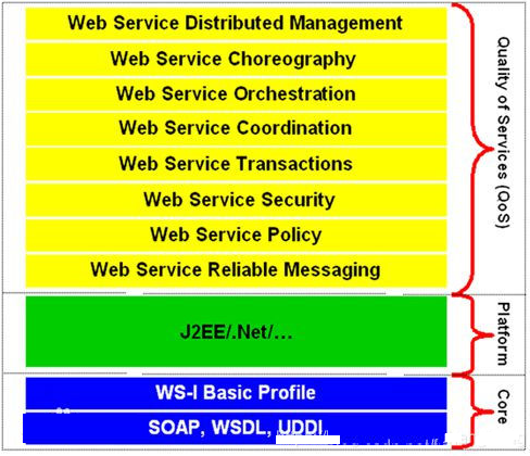 在企业中,关键任务系统(mission-critical system,译注:关键任务系统是指如果一个系统的可靠性对于一个组织是至关重要的,那么该系统就是该企业的关键任务系统。比如,电话系统对于一个电话促销企业来说就是关键任务系统,而文字处理系统就不那么关键了。)用来解决高级需求,例如安全性,可靠性,事物。当一个企业开始采用服务架构作为工具来进行开发和部署应用的时候,基本的Web服务规范,像WSDL,SOAP,以及UDDI就不能满足这些高级需求。正如前面所提到的,这些需求也称作服务品质(QoS,quality