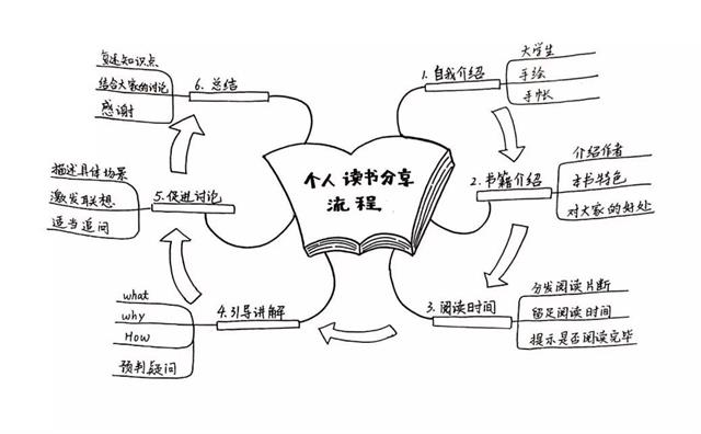 举例:假设阿润最近想做一个“读书小分享”,那么,阿润为自己的读书分享这个部分设计一个流程(这个流程分为六个部分)