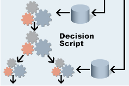 Rational Software Modeler 建模测试套件"章节)。决策脚本把AUT执行的验证结果与条件入口相比较,以便识别执行的测试活动(例如下一个需要运行的测试脚本)。当一个合并不可能或者还没有被实现时,数据池中的行将会被排斥,并且测试活动是未定义的。