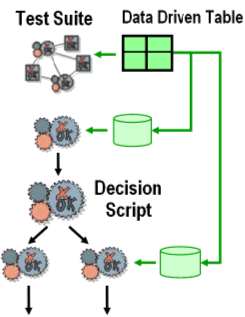 一般情况下,一个测试套件中的任何测试脚本都需要为数据输入连接到一个数据池。当一个数据驱动表连接到测试套件时,我们就可以将输入的各种组合的数据记录列入到测试脚本和动态变化的AUT行为中。当AUT的行为发生变化时,每一个决策脚本提供的结果都会变化,因此通过AUT的测试路径就会变化。通过一个简单的测试套件脚本,我们可以验证很多测试路径。这样可以轻松的合并输入的数据和扩大测试套件的范围,并在决策表中添加新条件。