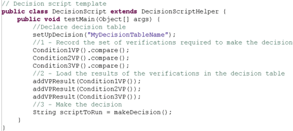 - 使用一个代码模版建立决策脚本,并填写决策表
