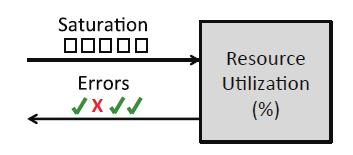 一旦资源的容量达到100%的使用率,就无法接受更多的工作,资源或者会把工作进行排队(饱和),或者会返回错误。