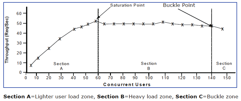 这几个区域实际上明确标识了系统性能最优秀的区间。系统性能开始变坏的区间,以及性能出现急剧下降的点。