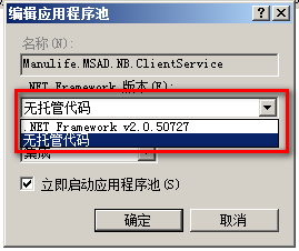 Step5.更改默认应用程序池的.net framework版本为“无托管代码”。
