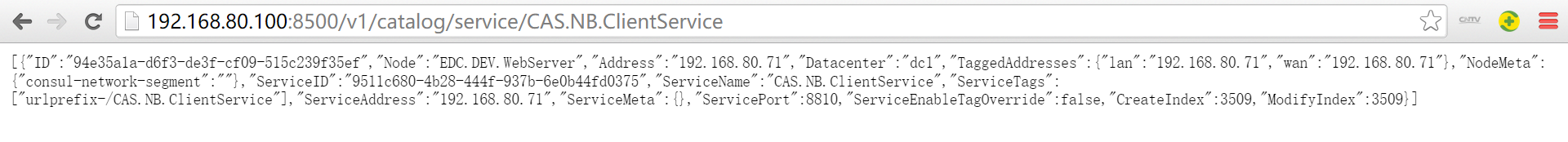 | Url>http://192.168.80.100:8500/v1/catalog/service/CAS.NB.ClientService |