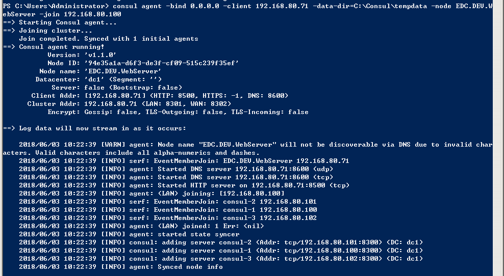 -data-dir=C:\Counsul\tempdata -node EDC.DEV.WebServer
