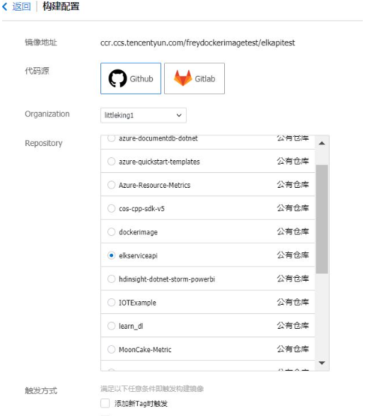 上传程序源文件到Github,在腾讯云容器CCS中新建镜像仓库 -- elkapitest