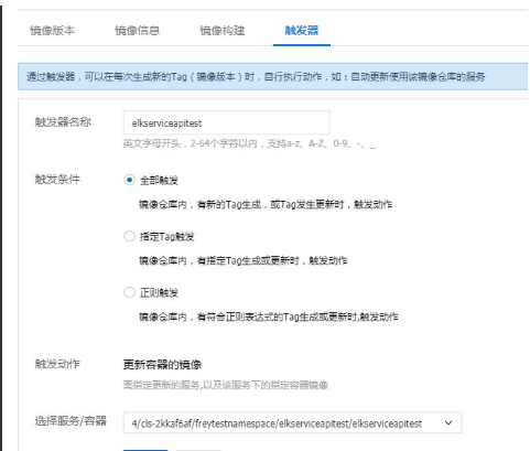 镜像构建完成后,在CCS上创建服务。如果定义了触发条件,每次源码发生变化,就可以触发服务更新,使用最新的容器镜像: