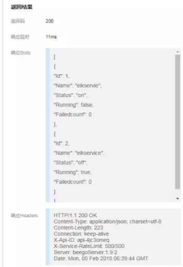 查询ELKService的状态,收到回复如下所示: