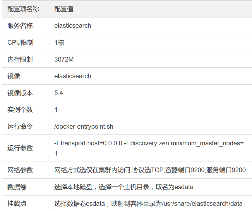 1.创建 elasticseach服务,该服务包含一个ES容器,ES容器配置硬件: