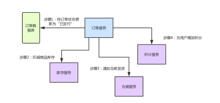 用户针对一个订单完成支付之后,就会去找订单服务,更新订单状态