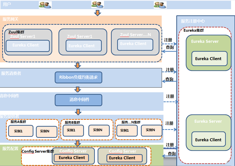 集中管理配置:一个使用微服务架构的应用系统可能会包含成百上千个微服务,因此几种管理配置是非常有必要的。