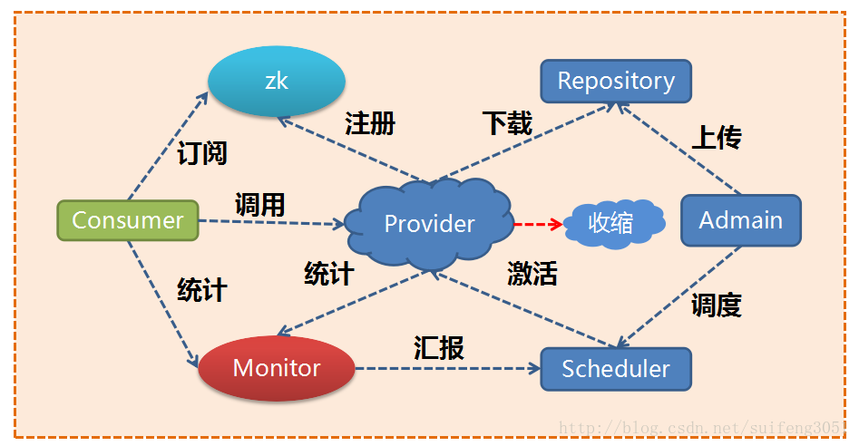 4.服务提供者无状态,可动态部署,注册中心负责推送