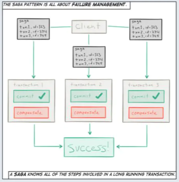 分布式事务是一个经常使用的方式用来协调分布式系统的变动,但其本质需要约束并发执行,保证同一时间只有一个用户在操作。因此其成本非常昂贵,会使得系统变慢、无法扩展。Saga模式是分布式事务之外的一个能够实现可扩展、弹性伸缩的选择。它的理论基础在于一个长时间运行的业务事务大多时候都是由多个事务步骤组成的,而事务步骤的总体一致性能够通过将这些步骤分组成一个总体的分布式事务来实现。该技术将每一个阶段的事务与一个可补偿回滚的事务配对,如果一个阶段的事务失败了,那么总体的分布式事务就可以回滚(反向顺序)。