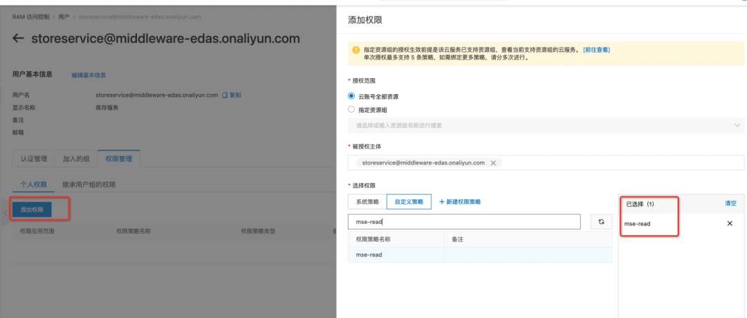 阿里云 MSE 由于是对企业提供服务,所以在权限的划分上会更加精细。