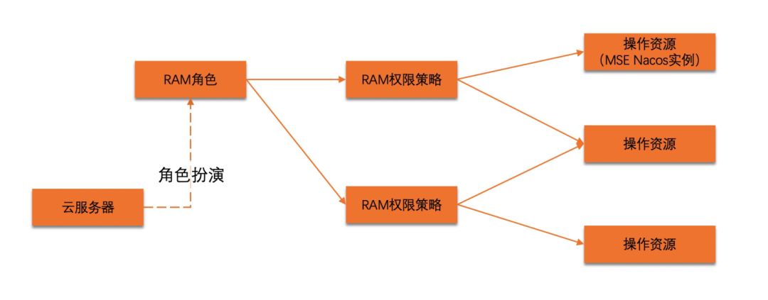 上述的关键步骤在角色扮演。只有关联了 RAM 角色的云服务器,才能成功扮演角色,从而获取操作 MSE Nacos 实例的权限。